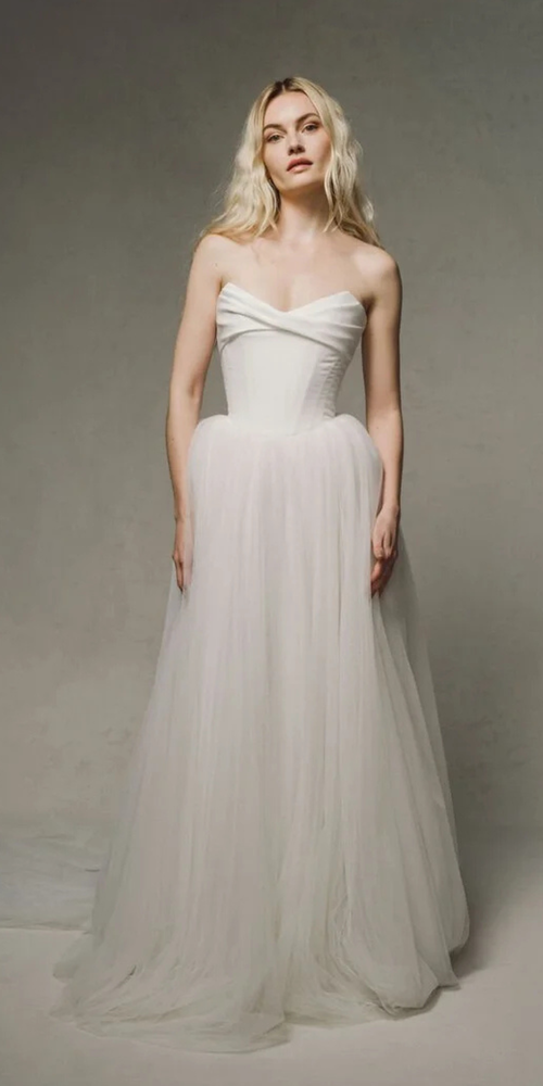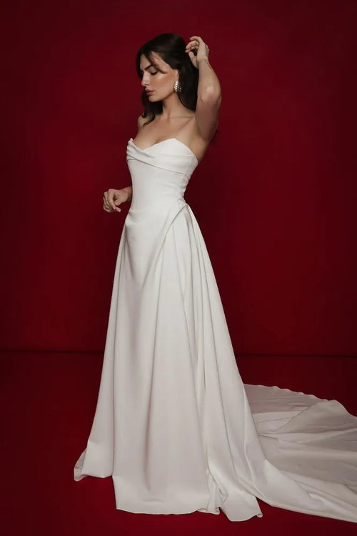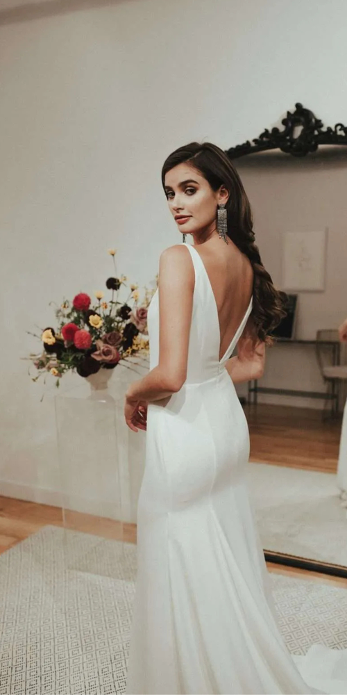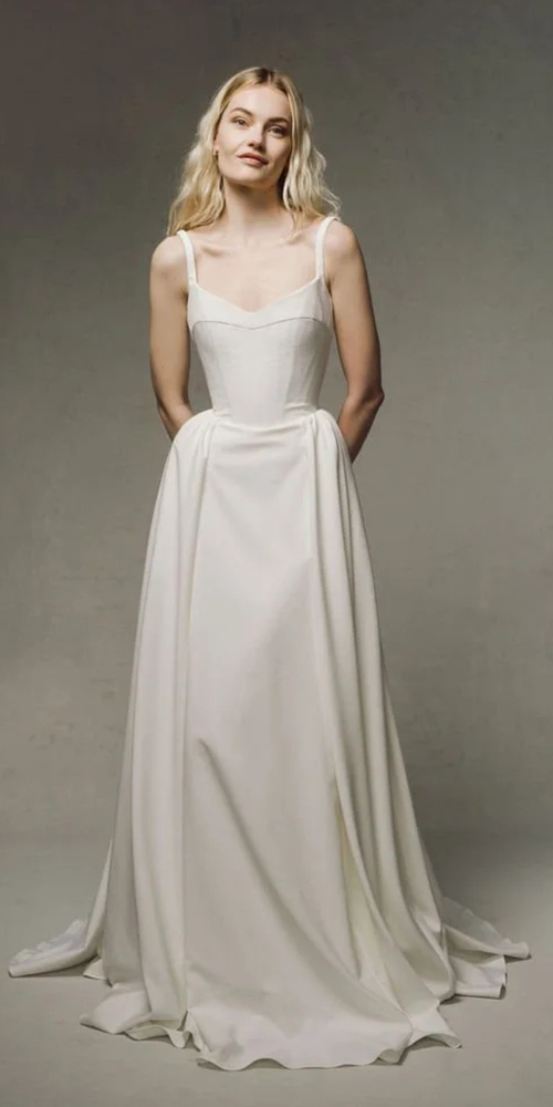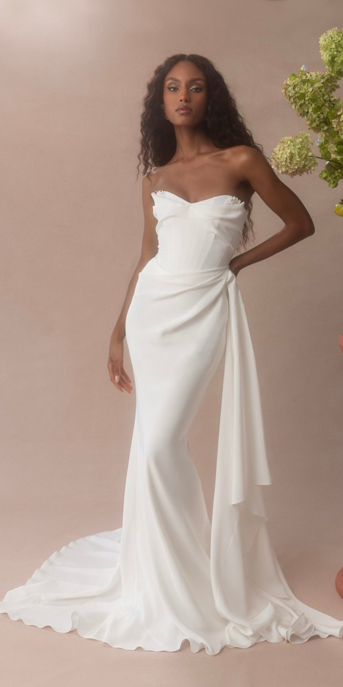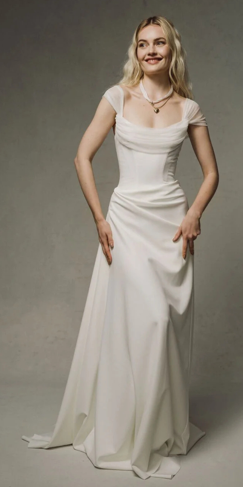 The Sarah Seven collection is made for a relaxed, modern bride looking for a wedding dress with a sleek, fitted shape with clean architectural lines. You believe there is power in simplicity and don’t want your wedding dress to feel “too much” - Sarah Seven is for you! You’re dreaming of a rooftop brunch wedding or an effortless outdoor celebration - Sarah Seven is for you!